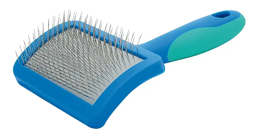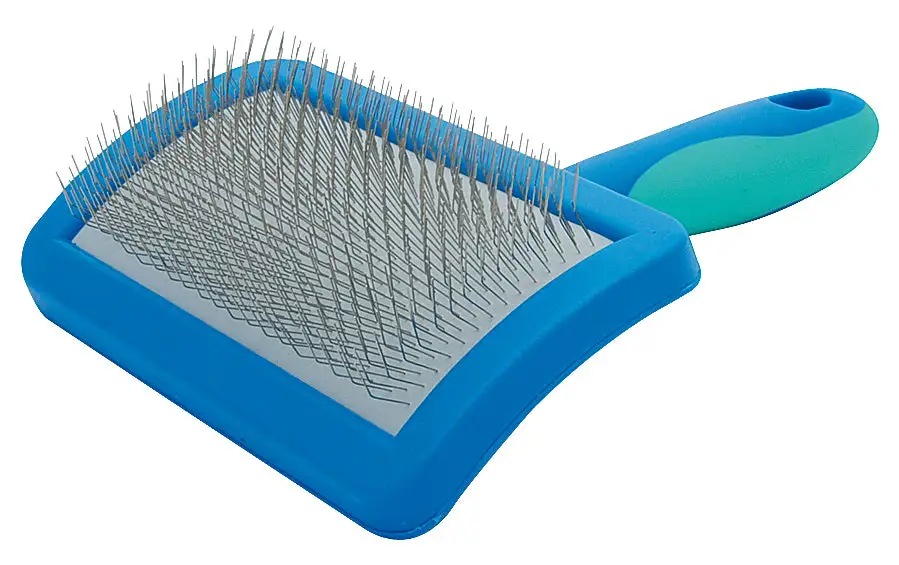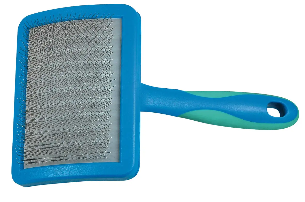 Carda con mango ergonómico y puas suaves y flexibles en acolchado de aire.