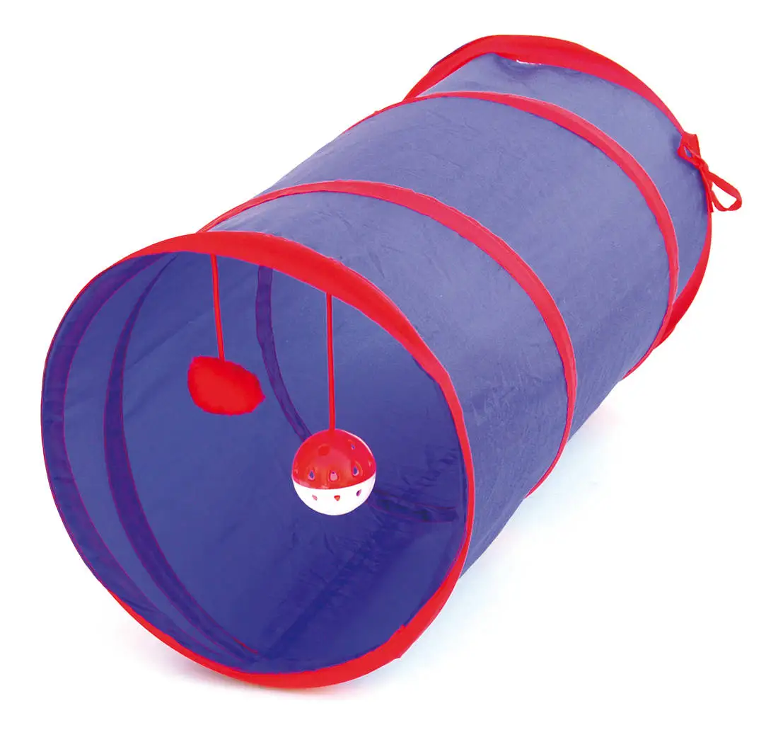 Tunel de diversión para gatos azul y rojo
