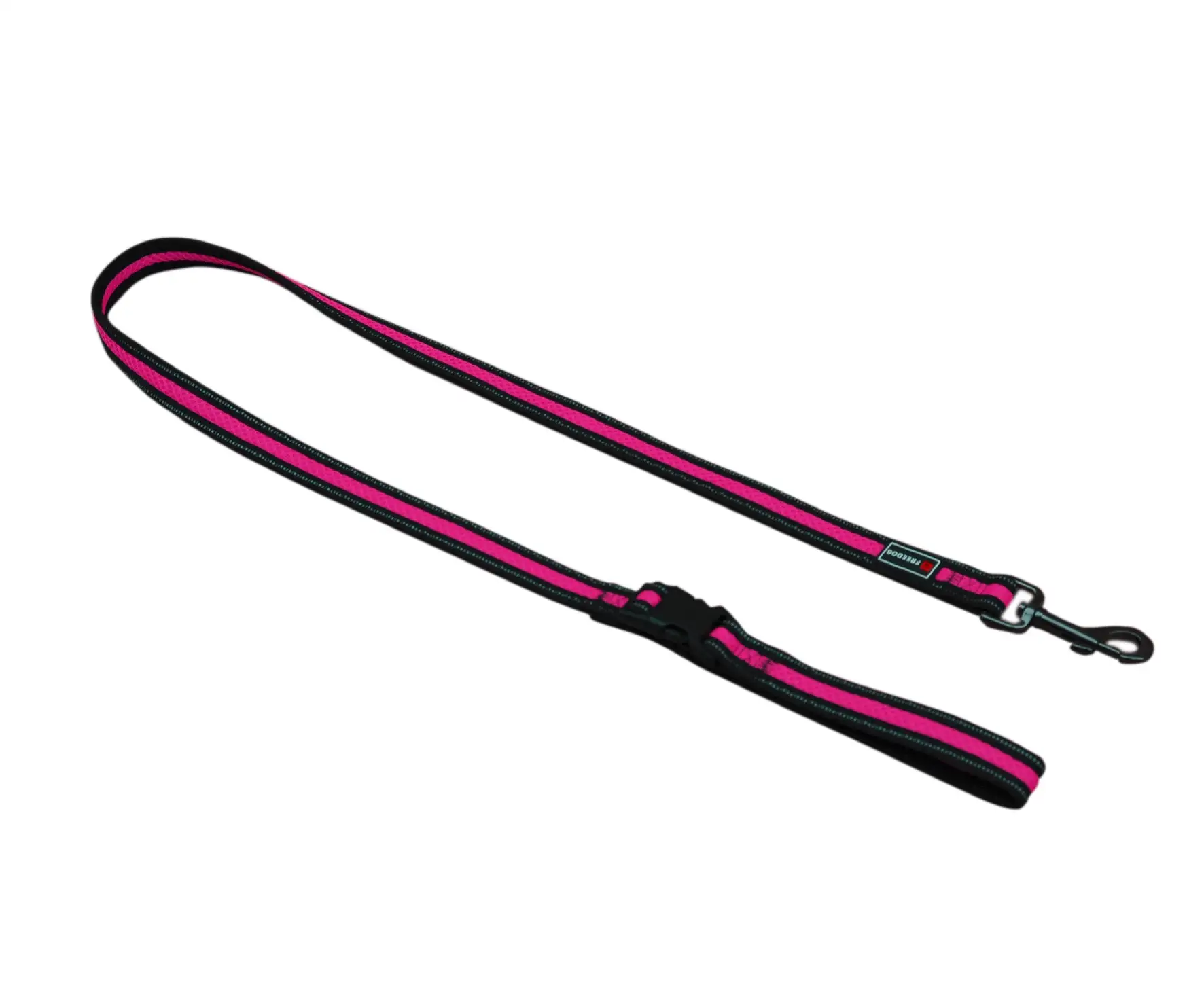 Tirador fabricado con nylon de alta calidad, reflectante, asa acolchada con lycra para su mayor comodidad, las piezas metalicas tienen el acabado negro cromado, ideal para practicar deporte con su mascota. Sistema de anclaje que te permite con facilidad fijar a tu mascota en cualquier punto. Disponible en diferentes tallas y colores. Es fácil de lavar, a mano o en la lavadora